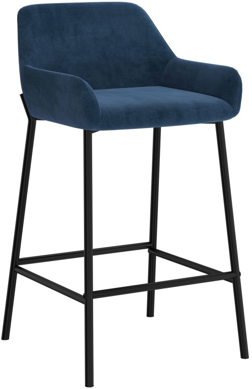 Contemporary counter height stool perfect for casual or formal seating at a kitchen island or a rec room bar. The plush cushioned seat and back will provide hours of comfort. The sturdy metal frame is finished in a matte black metal which allows for an easy match with any decor. The rich, velvet upholstery looks elegant, is on trend, and is easy to wipe clean.Read More