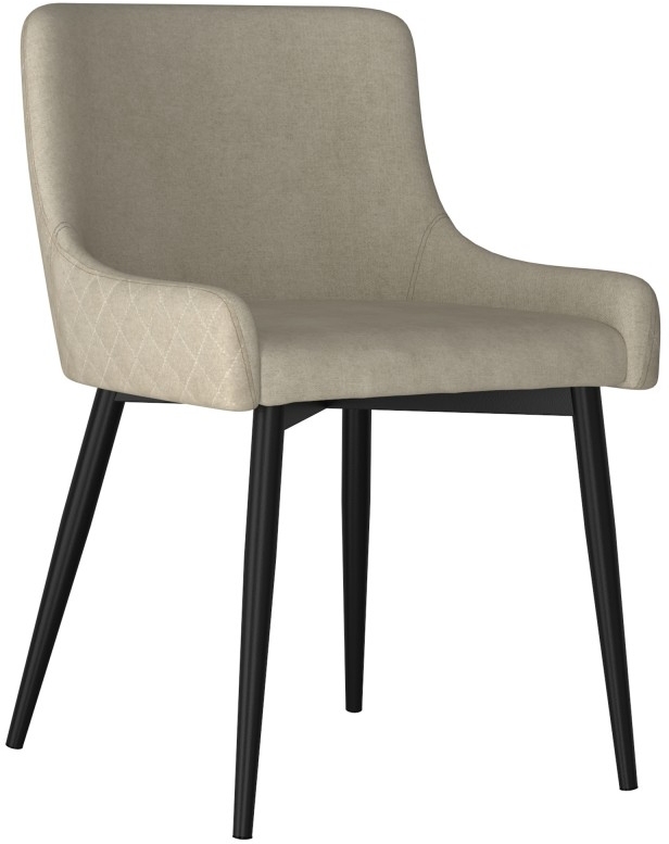 Find perfect, over-sized seating on this mid-century inspired dining chair. The contoured shape and plush, diamond-patterned tufting on the back provide comfort on one side and a dose of style on the other. Metal legs provide sturdy support and are finished in a matte black for an easy decor match. Great for a formal dining table or for everyday seating at the kitchen table.Read More