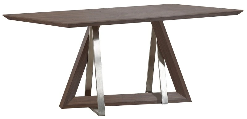 Upon entrance into the dining area, this contemporary table makes its presence known with appealing finishes, interesting stainless steel components, and a sleek geometric design that grabs attention and never lets go. Fashioned out of both wood and metal, the compelling and contrasting composition of this piece makes a striking statement.Read More