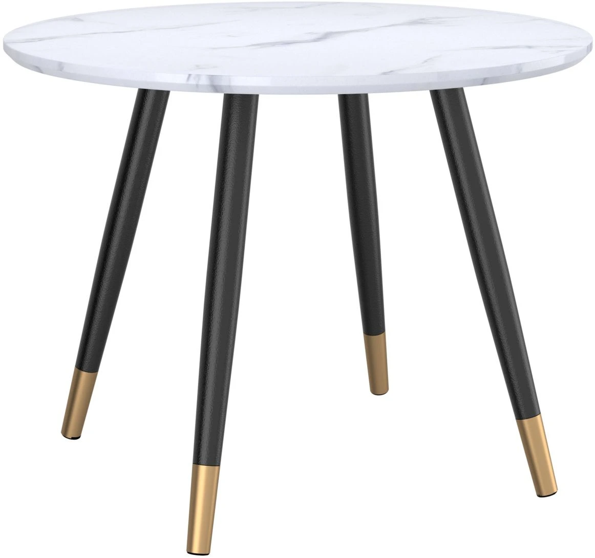 A clean, contemporary, marble-look dining table brings a true designer feel to your space. The A-line black metal legs have an aged gold accent that elevates this piece to couture status. A great match with various chairs styles and colours for a look that is uniquely your own.Read More