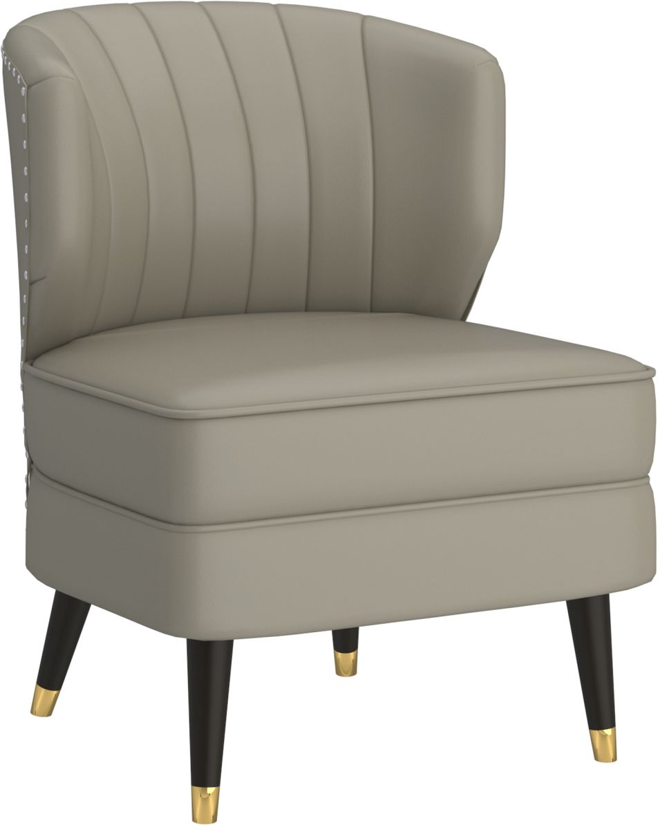 A fresh modern take on the classic wing-back chair. This accent piece has a plush oversized seat and comfortable curved shape that will provide hours of comfort as you catch up on reading or streaming. The nail head details and thick piping lend character to this chair, while the polished gold cap on the foot is a gorgeous finishing touch. Great as an accent piece, or pull up to your dining table for a truly designer look!Read More
