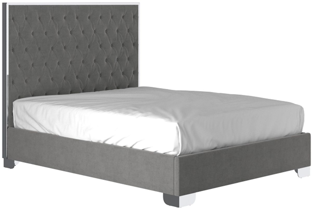 Bring a high-end look to your bedroom with this velvet and stainless steel upholstered bed. Everything from the button tufting on the plush upholstery to the polished metal legs screams style! Perfect for a master bedroom or to up the ante in the guest room.Read More