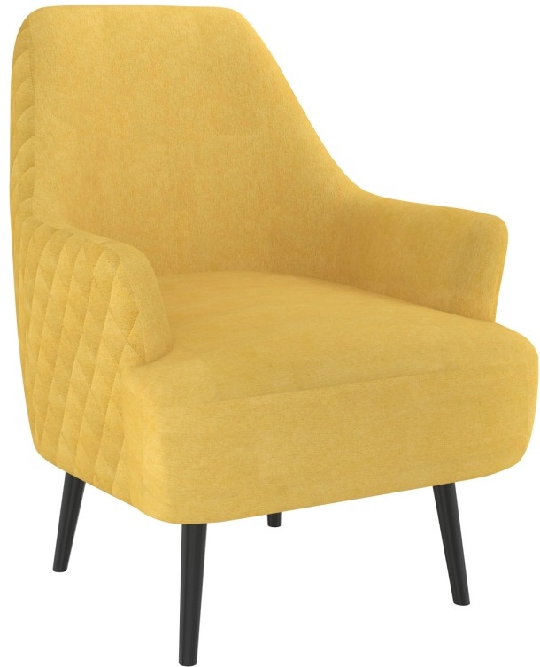 Gorgeous accent chair that just invites everyone to come and have a seat. Soft, textured fabric and plush cushioning make it a comfortable place to relax with a good book and a cup of tea. The seamless look and diamond-patterned tufting detail on the back make it a statement piece. It's a winning combination that will work in any room of the house. The matte black solid wood legs are the perfect finishing touch.Read More