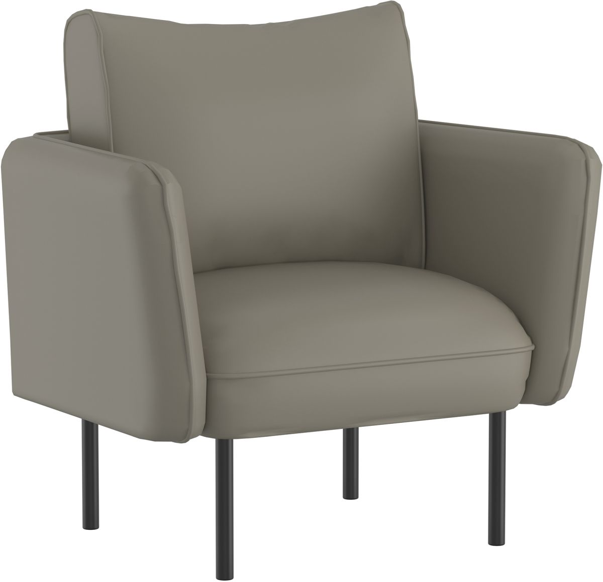 Plush cushions on a cozy armchair - the perfect place to curl up with a cup of tea and a really good book. Faux leather upholstery is chic and easy to clean, and combined with the black metal legs, create a fresh modern look. Perfect as a bedroom accent chair or for conversations in the living room.Read More