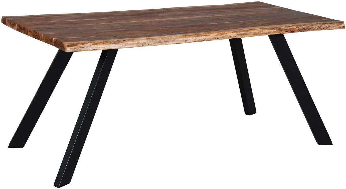Live edge wood detailing on furniture brings warmth to your space, and this table is no exception. The solid acacia wood tabletop has a natural burnt finish and is handcrafted, so each piece will be unique. The sturdy iron legs sit in an A-line, adding a dose of contemporary while keeping the top secure.Read More