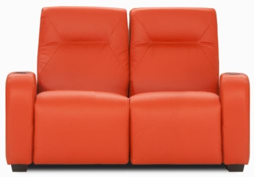 This Home Theater Loveseat Sectional features tight seats, cupholders, and is made of leather.Read More
