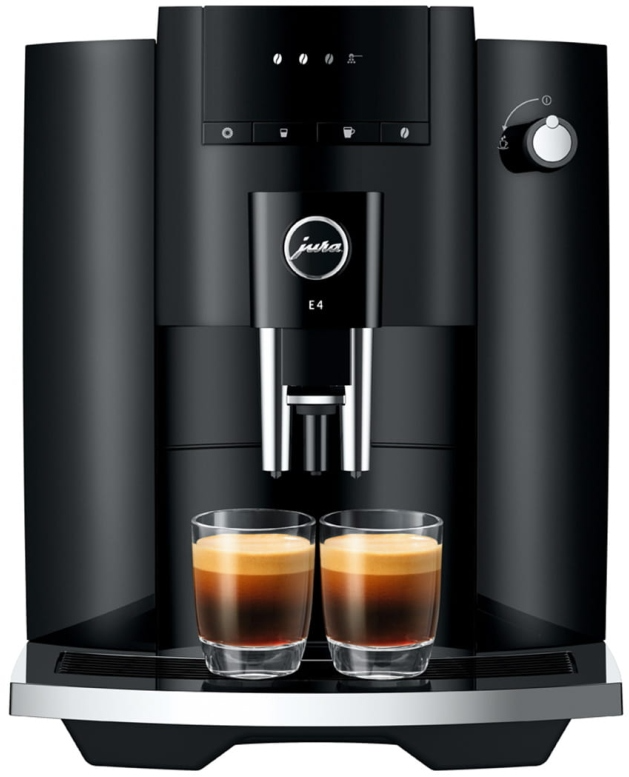 The E4 reflects the characteristic design of JURA coffee machines, with clean lines and surfaces. Crafted with maximum precision, the minimalist lines emphasize the premium quality of the machine. The use of colors follows the same minimalist approach. While the complete body of the machine is in understated Piano Black, chrome-plated details add accents and set off the finished coffee to perfection.