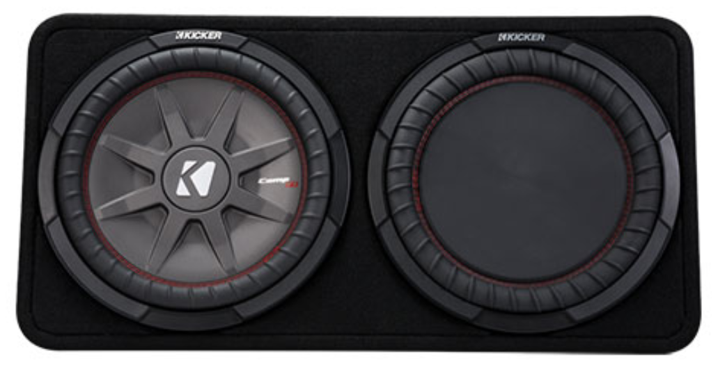 The CompRT Thin Profile 12-Inch Subwoofer Enclosure comes loaded with a Reflex Subwoofer and RT Sub, then carpeted and loaded with a single 4Ω terminal.