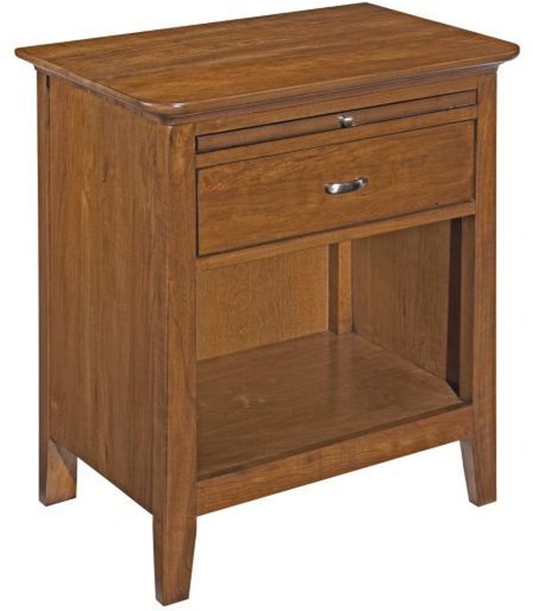A less conventional bedside table in the Cherry Park collection is the Open Nightstand. A slightly narrower footprint makes it ideal where the space is limited or in bedrooms that call for a lighter scale. An added feature on this piece is a pull-out tray that uses a laminated top to provide a spot for hot or cold beverages.Read More