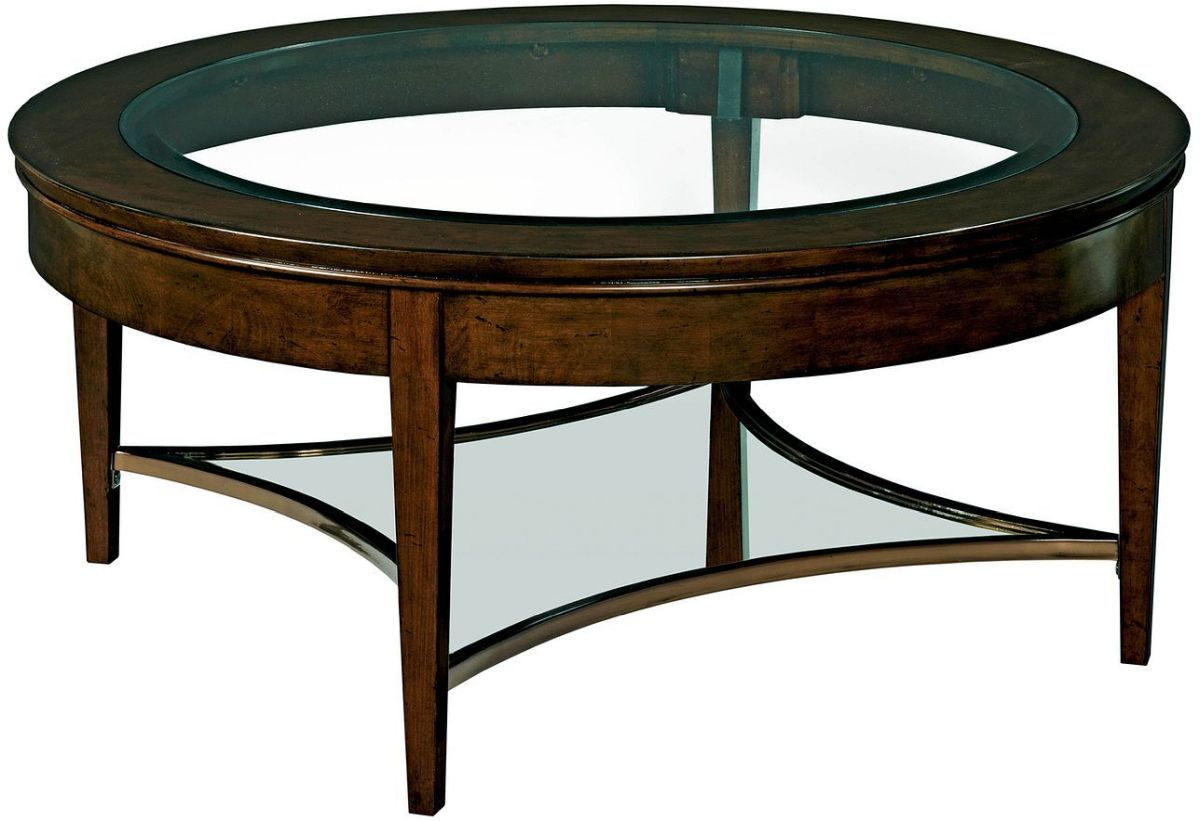 A complete different living room option, the round Aura glass cocktail table has two tiers of glass with subtle metal trim. The shape makes it a great option for everything from medium sized sofas to sectional designs.Read More