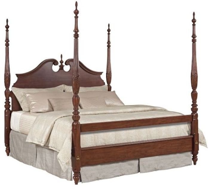 True 18th Century styling is found in the Hadleigh Rice Carved bed. From solid, hand-carved posts to the pediment styled headboard, this bed is a modern torch-bearer for classic furniture. It is available in Queen and King sizes. The package shown here includes a queen headboard, footboard, side rails & center support system.Read More
