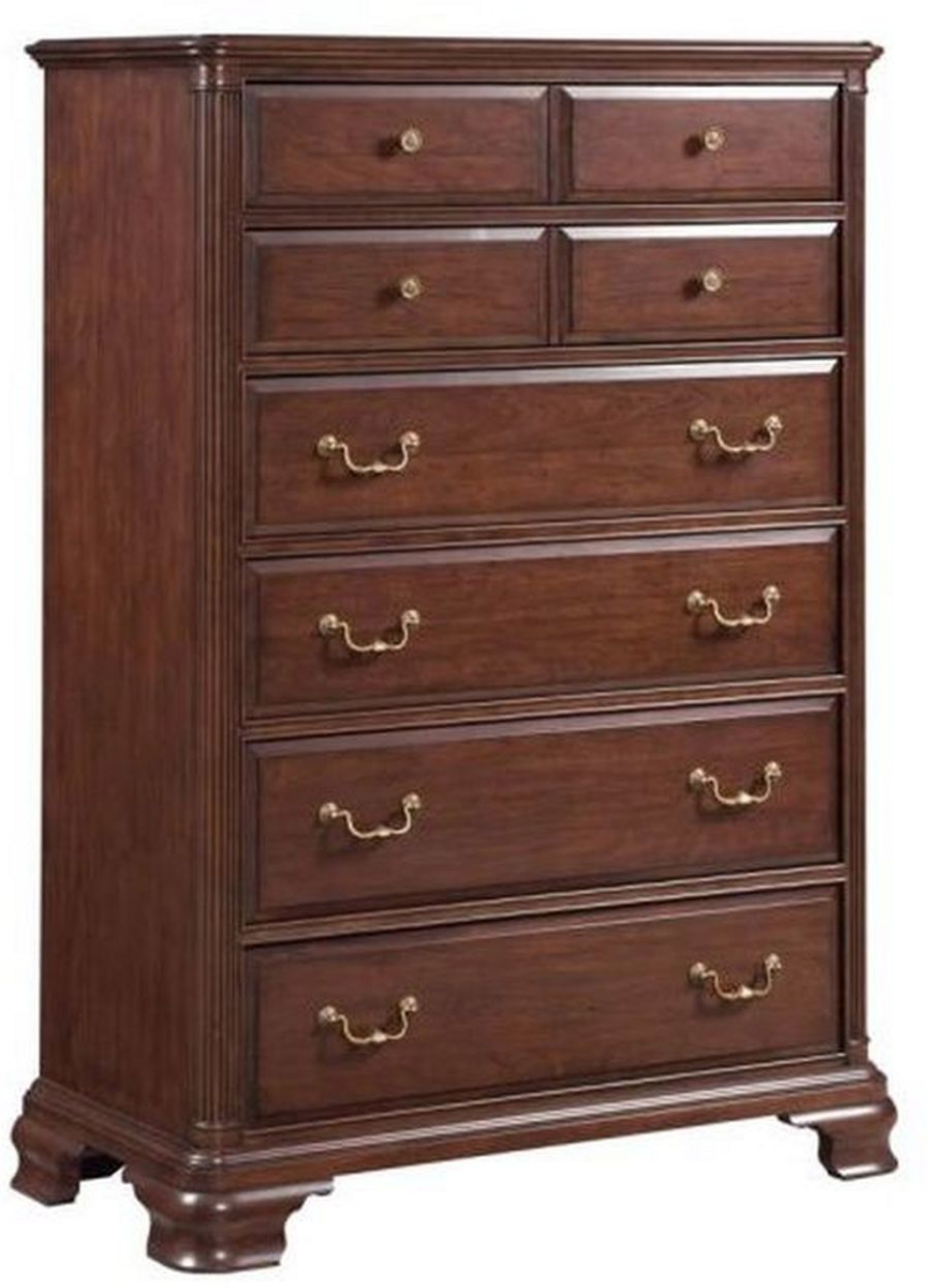 Like the classic tuxedo, Hadleigh establishes a sense of timeless refinement. The collection is crafted with hand selected, solid wild black cherry from the Allegany mountains with a finish that showcases the natural beauty of this sought after lumber. Within the collection is a balanced blend of the 18th Century classics with modern touches for an updated look. Intricate dental mouldings, reeded posts, bead-framed drawers and subtle hand carvings speak to the tireless focus of the individual artisans. Meanwhile, a nod toward modern style comes from design cues like the brushed gold tone hardware and textured fabric touches. Hadleigh combines the best features of new furniture technology with the authentic benefits of solid wood furniture in an heirloom-quality construction. Notable elements include the Kincaid Soft-Close drawer glide system. Kincaid also utilizes the best of the old-world construction techniques such as English dovetails, mortise and tenon construction, floating tops and panels, full dust proofing, and multi-step hand-rubbed finishes.
