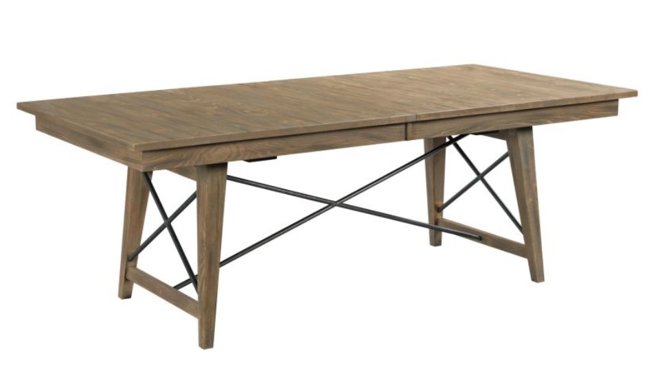 The Laredo Dining Table is the flexible centerpiece of the Modern Forge collection dining room. With two 20" extension leaves it can easily seat four, six, eight, or ten. And the mechanized table extension makes it a breeze for one person to add or remove leaves without moving the base. The Laredo also features Kincaid Furniture's KinGuard performance dining table finish. This added feature helps to protect the table top from normal food and drink spills.