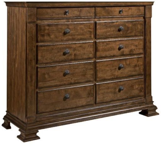 A second dresser option in the Portolone Collection is the Bureau. While it measures six inches narrower than the dresser, it shifts the dimensions taller to a 48 inch height. This makes it ideal for taller ceilings or slightly less wall space. With ten drawers - one of which features a flip-down front for media components - the Bureau can also make a great television perch as well. It is made of solid alder and can be purchased with either a hewned solid wood top (shown here), or a weathered marble top.