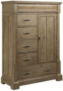 The rustic character of solid pine is treated to a hand-rubbed finish that offers a casual, weathered texture to the surface. The natural colour of the wood is highlighted with gray undertones that give Stone Street its unique personality. From a design perspective, neoclassical styling and architectural details are as timeless as the solid wood furniture construction. A final touch is a choice of hardware that can take Stone Street in a more modern direction with the bar pull, or more rustic by incorporating the round knob option. But the best part is that each piece that uses hardware comes standard with both options.