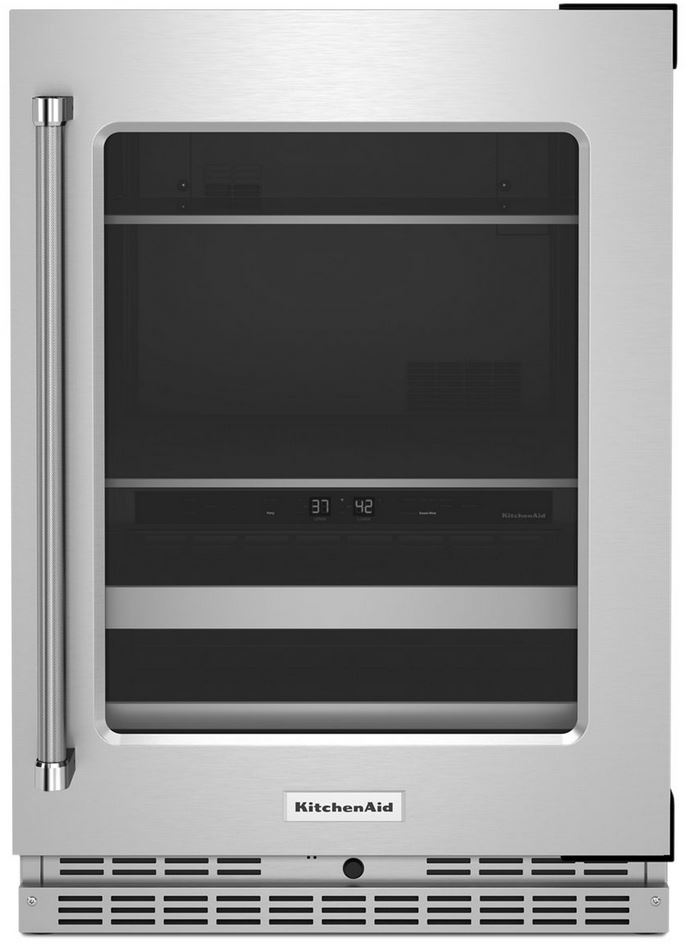 This Undercounter Beverage Center with Full-Extension Metal-Front Racks holds 14 wine bottles below with room for drinks and food on the full-width shelves above. Separate temperature controls for the two zones adjust for what you’re storing, and a Temperature Monitoring System with sensor alert adds peace of mind. Fully Flush Installation with Hidden Hinges provides a built-in look within cabinetry.