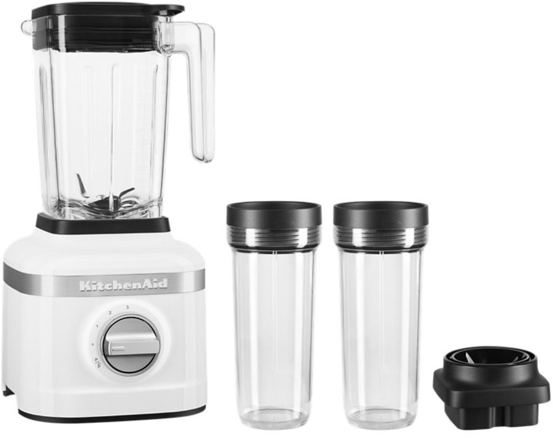 Discover more possibilities with the K150 blender accessories available - 6-oz. Small Batch Jar Expansion Pack (KSB2040BBB) and 16-oz Personal Blender Jar Expansion Pack (KSB2030PJB). Sold separately.