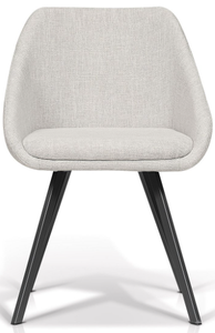 This side chair has a retro design combined with modern refinement. Luxurious fabric upholstery. The seat is curved to offer two armrests for superb support. Boasting an all-encompassing design, the strong chisel-like frame is made from high quality extruded steel that tapers to the floor and have a subtle flared design.Read More
