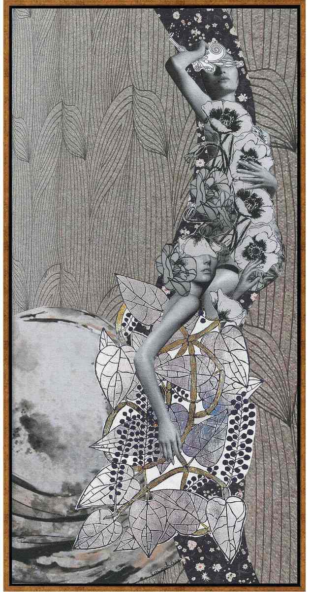 An assemblage of different forms of visual narratives that borrow from aspects of pop art, dada, and traditional surrealism and serves as a snap shot from which the viewer can create his or her own narrative. Wherever possible 'enzokay' cites parts of the human body in synergy with nature and it's identity as the conceptual basis of her work, "…it's like stepping in a wonderland universe". With this playful approach, each piece expresses visual techniques rather than words and invites viewers to step inside a fantastic world to feel rather than think. A special space that looks like a dream, a space where many things are meant to be felt, understood metaphorically, having you come back again and again to find new emotions.