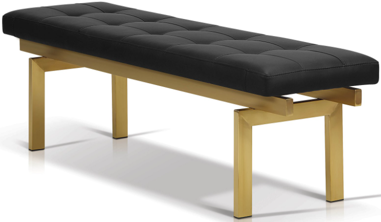 This bench is elegant as it is comfortable. The lightweight, brass plated brushed stainless steel frame supports a thick padded tufted faux leather cushion. This modern bench easily fits your modern décor and features a great modern design that won't go unnoticed.Read More
