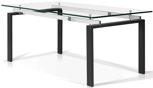 This glass top dining table adapts to your evolving dining needs, offering a striking blend of clean angles and sturdy materials. The eye-catching black steel base draws the eyes upward to polished stainless steel bars that hoist a floating tempered glass top.Read More