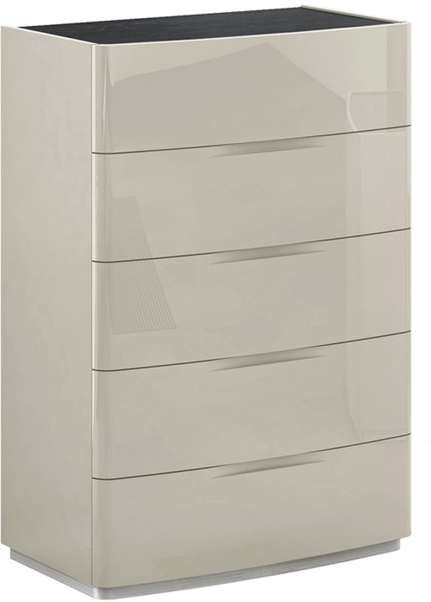 Brimming with modern solid wood laquer finish, the Asher bedroom collection in light grey with a high-glossy finish will work with a variety of interiors.