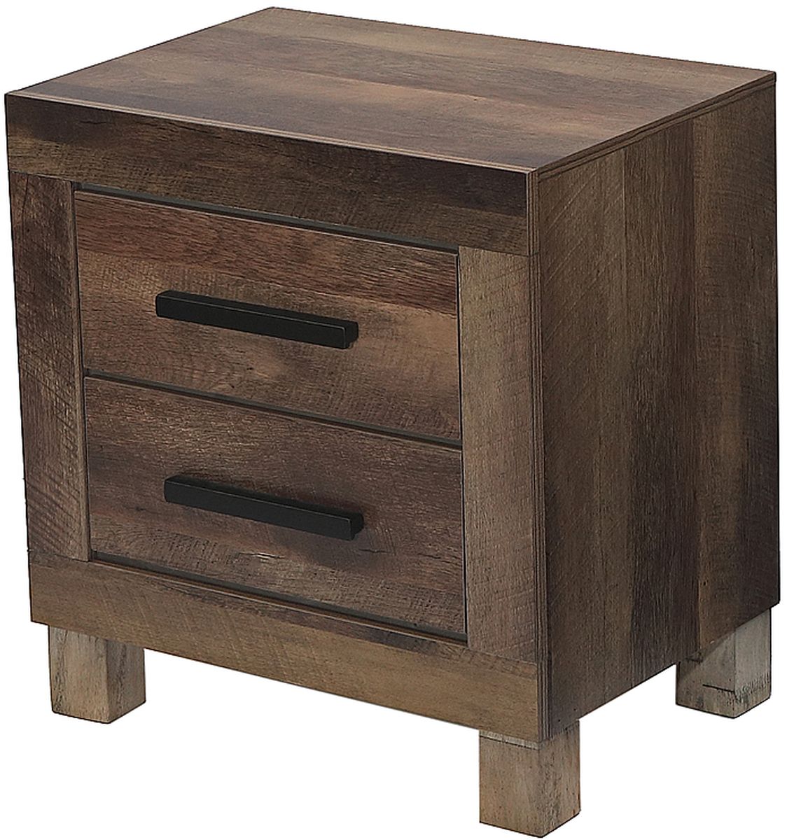 An apt choice for a minimalist country-style setting, this rustic brown plank design two-drawer nightstand with English dovetail joints is an excellent piece for your bedroom with a utilitarian angle to it.Read More