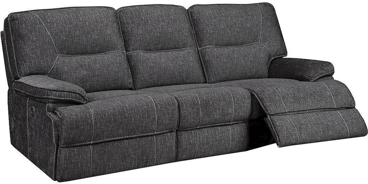 Three seater Maryland power reclining sofa in gray fabric.Read More