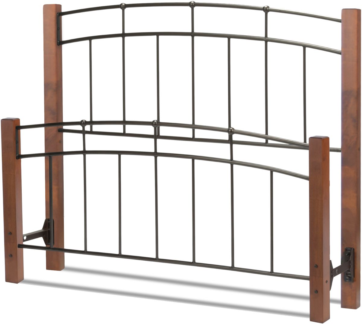 Benson full headboard and footboard features carbon steel and wood, tools and hardware, standard bed frame attachment, and sloping metal top rail.Read More