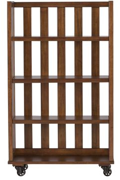 Create an open and natural feeling with the Arlington House 60" open bookcase. Crafted with poplar solids and acacia veneers, this piece features an urban cobblestone brown finish, unique open slat design, and industrial metal casters. Storage abounds with the three shelves and bottom panel that acts like a fourth shelf.Read More
