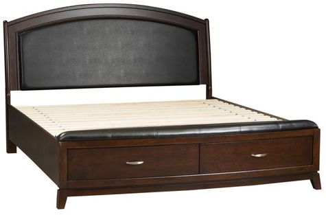 Make the most of your space with the contemporary style Avalon panel storage bed. The dark truffle finish is accented by black leather on the sleigh headboard and storage footboard.Read More