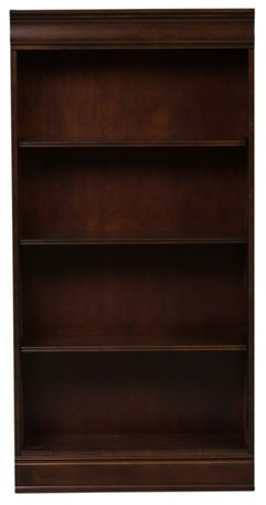 Create scale, add comfort, and define your style with the Brayton Manor Jr executive 60" bookcase. Crafted with poplar solids with cherry and birch veneers, this piece features a smooth cognac finish and adjustable shelving. Crown molding outlines three shelves and the bottom panel, which acts as a fourth shelf. Expand this piece, as it can be bunched!Read More