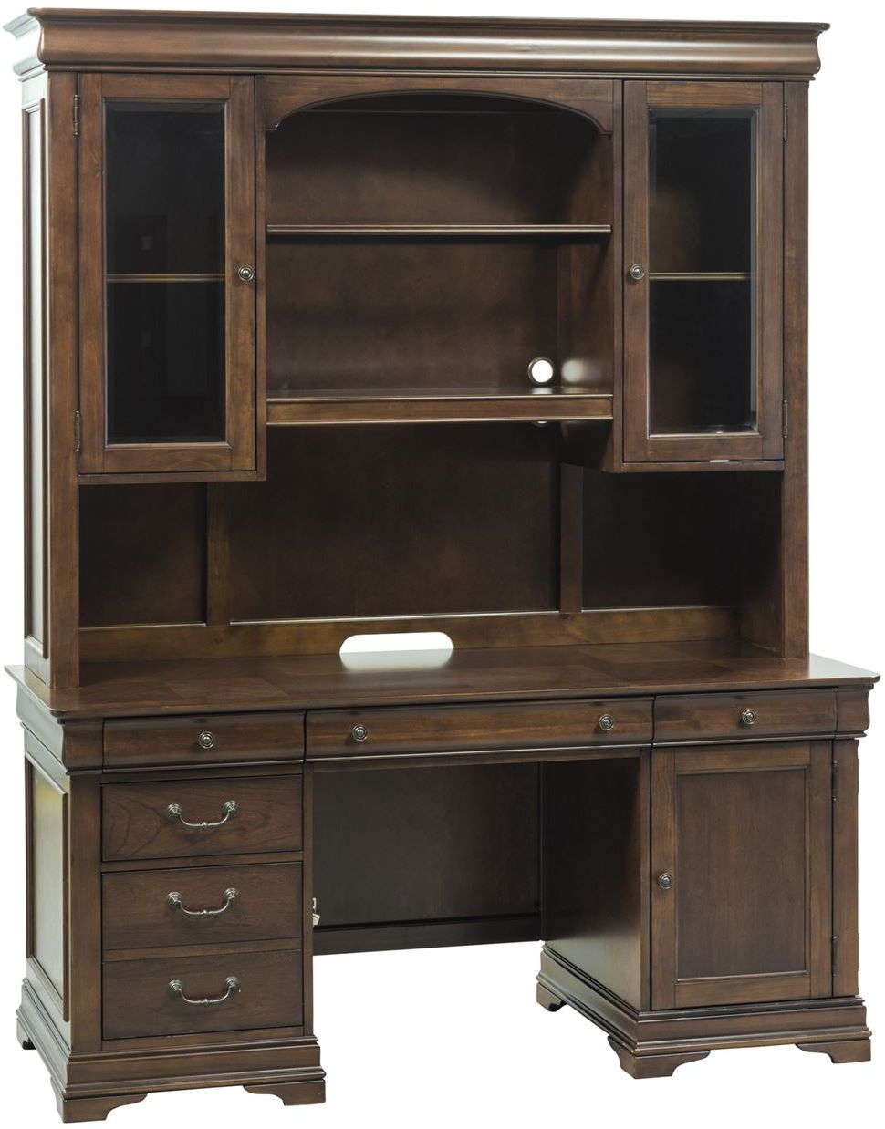 The Chateau Valley credenza and hutch is timeless in both design and appeal. Crafted by poplar solids with cherry and birch veneers, this piece features LED touch lighting equipped with an adjustable non glare task light in the hutch.Read More
