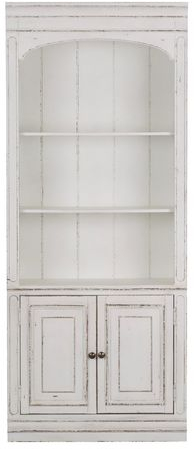 Accent your space with the perfect blend of European Traditional design, using this unique Magnolia Manor 78" bunching bookcase. Crafted with poplar and rubberwood solids with white oak and birch veneers, this piece features an antique white finish, adjustable shelving, cabinet storage, bead molding, and a flush fit to the wall accented by knob hardware in an antiqued pewter. Warm antique finishes and artistic distressing along with grand scale a group to be passed to generations.Read More