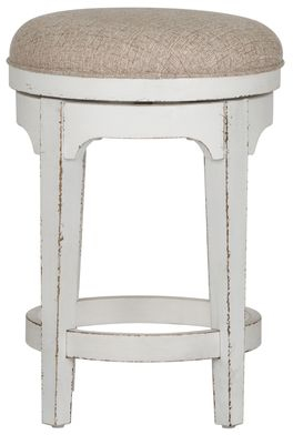 Magnolia Manor console stools are very versatile and can be used with our console bar, kitchen island or counter height tables. Features a cushioned upholstered seat with a return swivel seat. Fabric content is 35% cotton and 75% polyester.Read More
