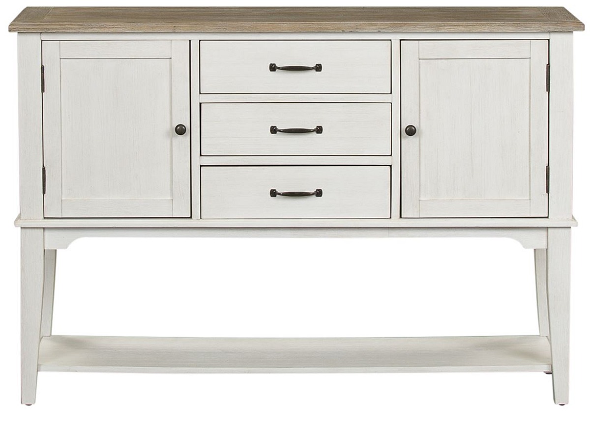 The Liberty Furniture Summerville Server features a soft white wash finish with a wire brushed gray top.Read More