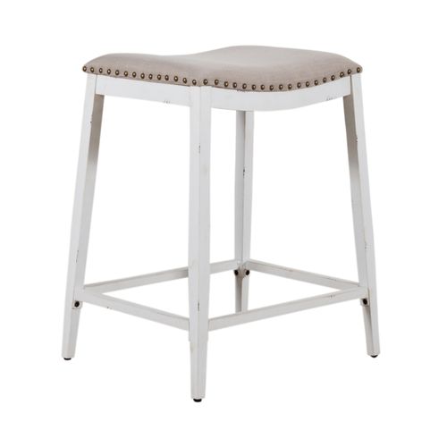 Indulge in classic vintage styling and industrial feel with the Vintage Series backless counter chair. Crafted of metal, featuring nail heads with linen upholstery, this piece features multiple finish options and heavy distressing. Distressed metal finishing accompanied by colors that can mix and match offer a unique designer look.Read More