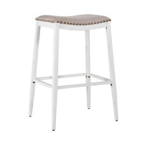 Indulge in classic vintage styling and industrial feel with the Vintage Series backless barstool. Crafted of metal, featuring nail heads with linen upholstery, this piece features multiple finish options and heavy distressing. Distressed metal finishing accompanied by colors that can mix and match offer a unique designer look.Read More