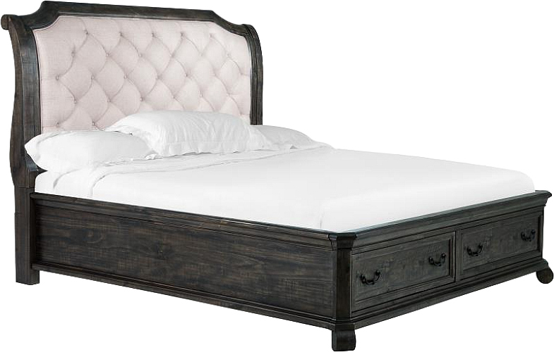 A plethora of bed options offer upholstered tufted headboards, storage footboards, panel headboards and gorgeous shaped panels with or without sumptuous scrolled design work for a Chateau feel for any taste.