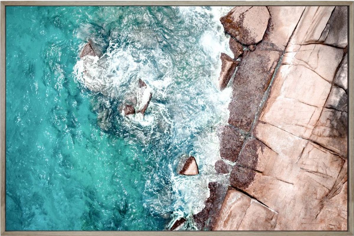 The Birds Eye View wall decor features an ink on canvas on a light wooden frame. This vibrant photorealistic piece depicts water and land locked together.Read More
