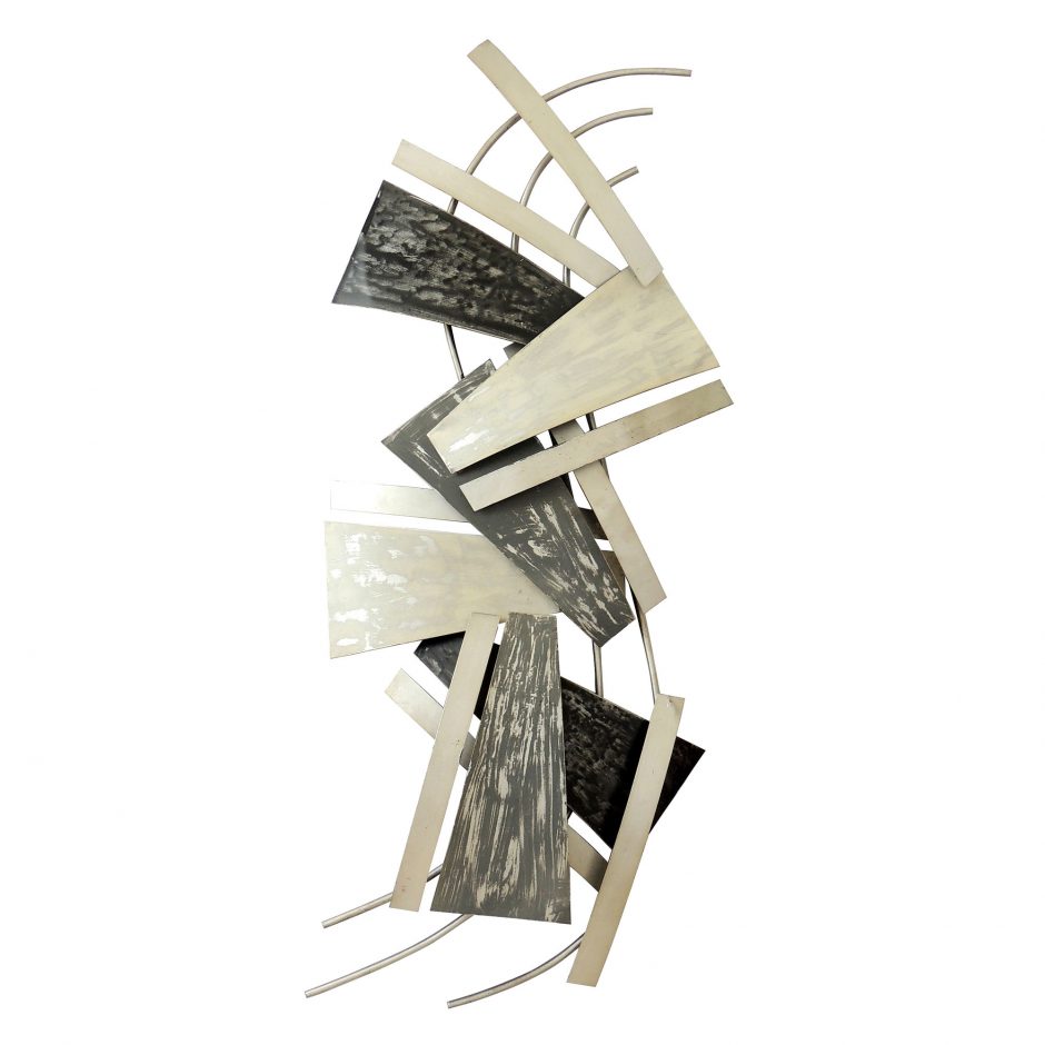 At Moe’s, we firmly believe that the home provides an environment of comfort and positivity. This belief is exemplified in the detail and care we give to our products. We strive to keep our stores warm and inviting; welcoming customers to come and nourish their desire for home décor. Geometric sheets of metal in tones of silver and grey make an attractive industrial art piece.