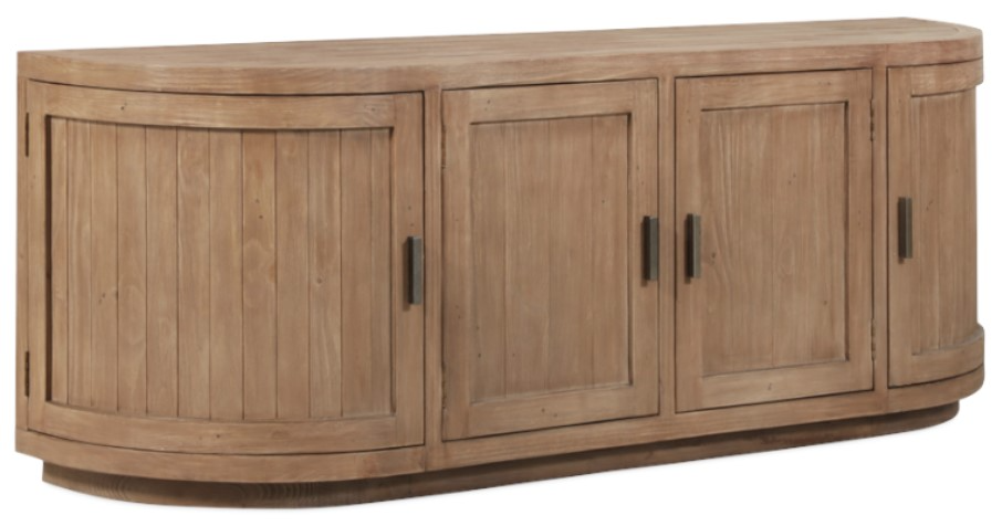 A blend of modern and vintage with its contemporary silhouette, the Nicola media cabinet features curved doors that smooth the bold textures of reclaimed wood. Its striking form stands on a recessed base, offering a stark contrast that beautifully complements transitional settings.Read More