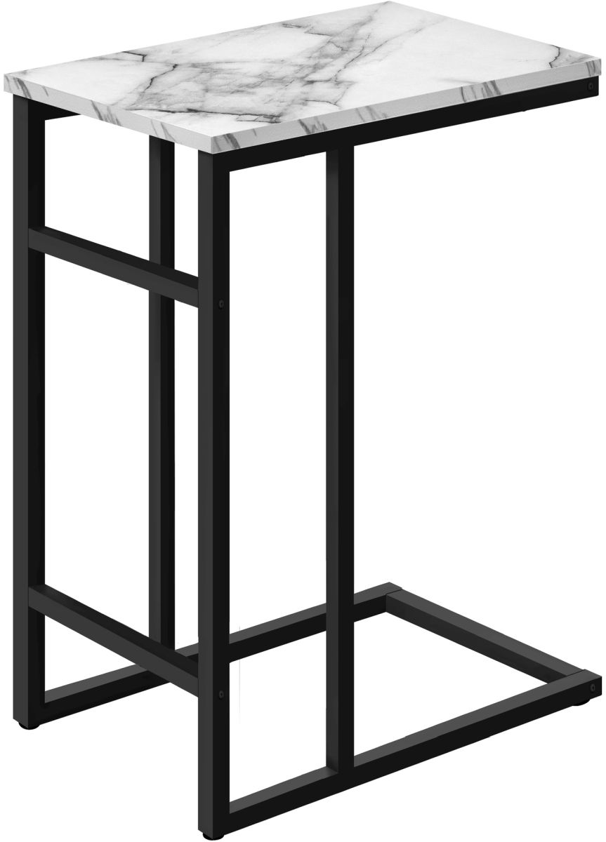 Bring a modern tone to your living room, office space, family room or den with this stylish faux white marble/black metal C end table
