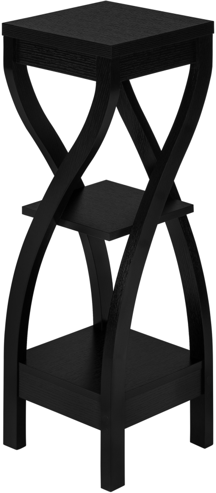 Featuring a square tabletop and two shelves, its three-tier design maximizes the vertical display space available in a living room, an entryway, or any room in need of a small table with storage. This side table in a black finish has a versatile style that can serve a variety of purposes, including as an indoor plant stand.