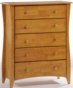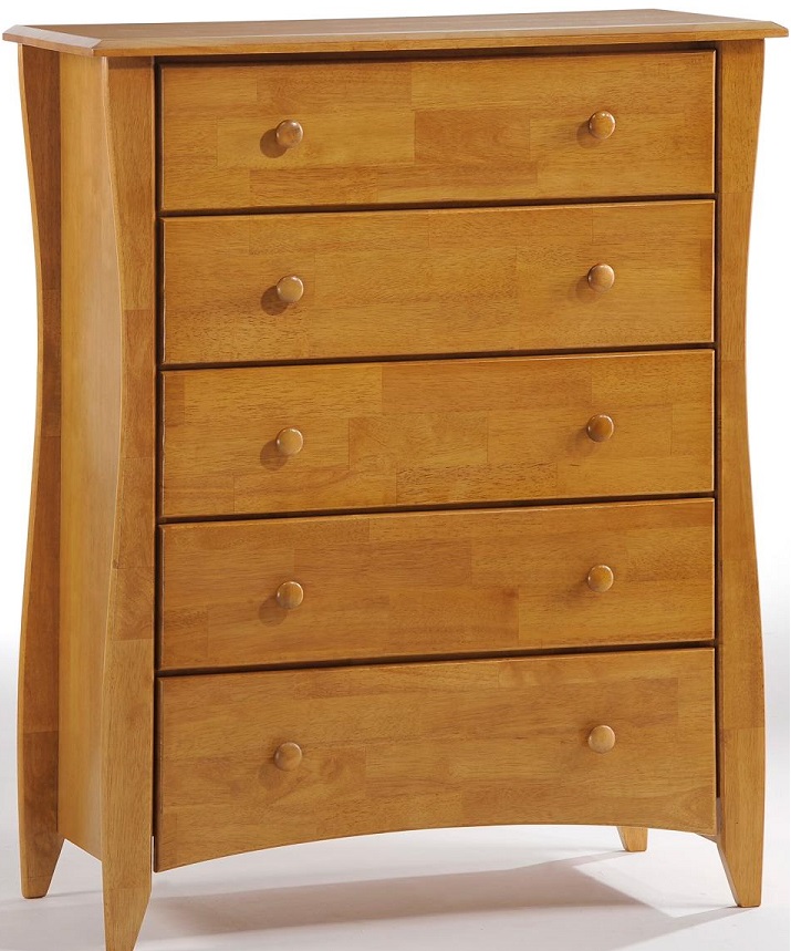The curvy edges and outstanding finish of our Clove Cases help create a soothing environment while keeping your things neatly organized. Big drawer storage and the Armoires' entertainment center fit well into the attractive styling of the Clove group. Our Clove 5 Drawer Chest pleases with it's stately look, and gives you fabulous storage while taking up minimal floor space. The long curves of it's tall legs may be it's finest feature. Every set comes complete with two sets of drawer knobs, to assemble per your choice in either wood or metal (pewter finish). All Spices Bedroom Collection items comes with a limited 10 year warranty; see local store for full details.