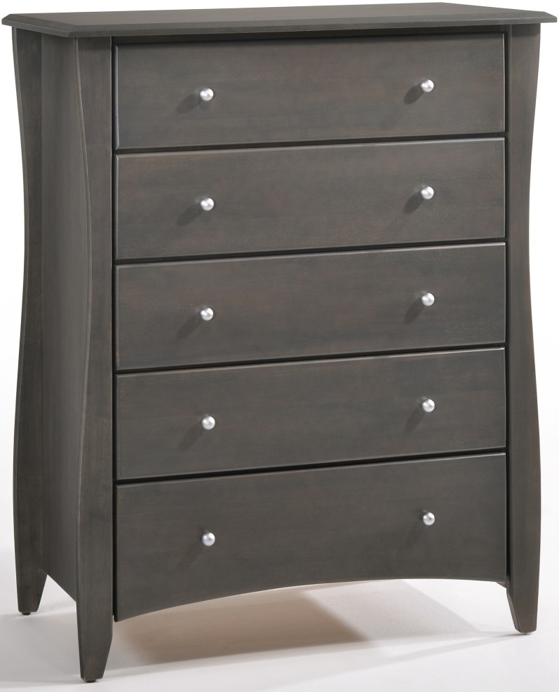 The curvy edges and outstanding finish of our Clove Cases help create a soothing environment while keeping your things neatly organized. Big drawer storage and the Armoires' entertainment center fit well into the attractive styling of the Clove group. Our Clove 5 Drawer Chest pleases with it's stately look, and gives you fabulous storage while taking up minimal floor space. The long curves of it's tall legs may be it's finest feature. Every set comes complete with two sets of drawer knobs, to assemble per your choice in either wood or metal (pewter finish). All Spices Bedroom Collection items comes with a limited 10 year warranty; see local store for full details.