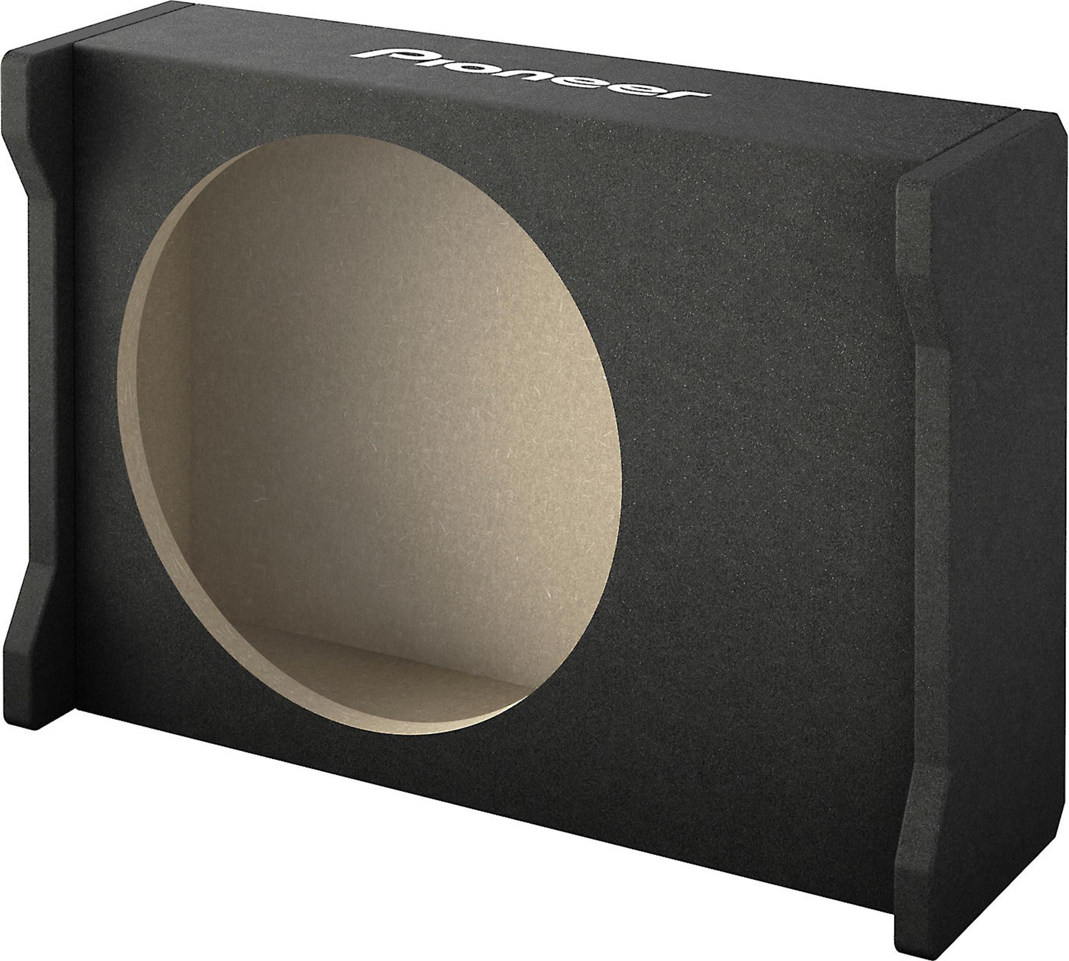 Pioneer 12" Shallow Subwoofer Downfiring Enclosure with sealed 5/8" MDF construction and black carpet exterior. By directing the subwoofer diaphragm downward, the UD-SW300D radiates bass with superior efficiency for richer, deeper low-frequency sound regardless of the enclosure’s installed position.Read More