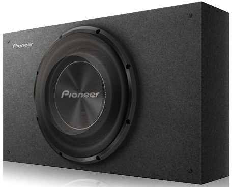 Pioneer 12" Black Shallow-Mount Pre-Loaded Enclosure Subwoofer features carpeted enclosure with embroidered logo and fully covered steel mesh grille.Read More