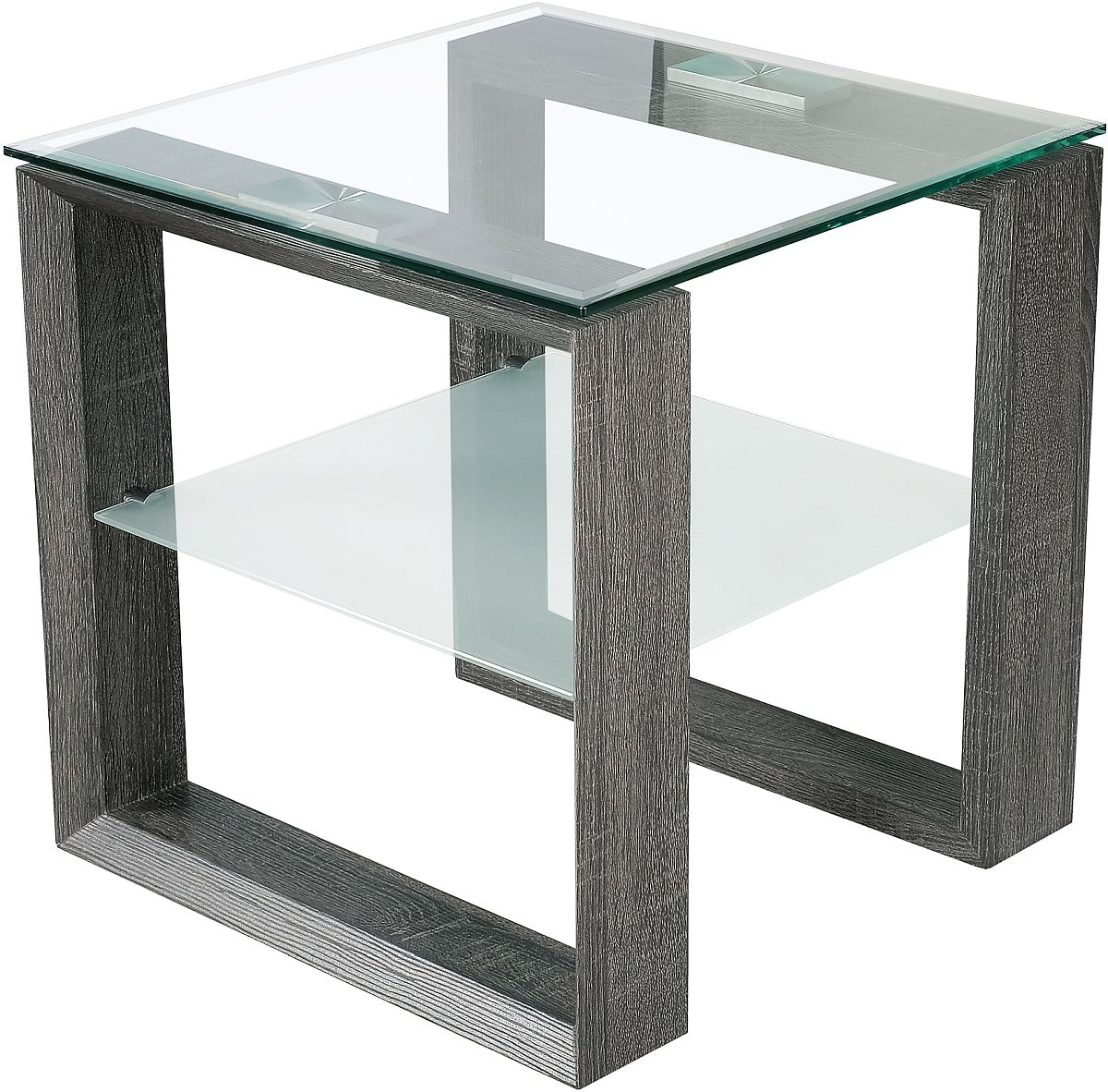 Its wood-look frame with a grey finish provides a stylish contrast to the glass, creating a minimalist yet sophisticated aesthetic. The 7369 End Table not only enhances the visual appeal of your space but also offers practical storage solutions.
