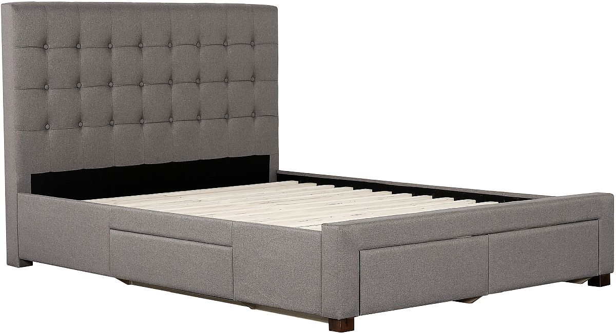 Transform your bedroom with the luxurious charm of the Sullivan upholstered bed. Designed with a modern aesthetic, this bed features a beautifully tufted headboard in a soft grey fabric that complements any decor.Read More